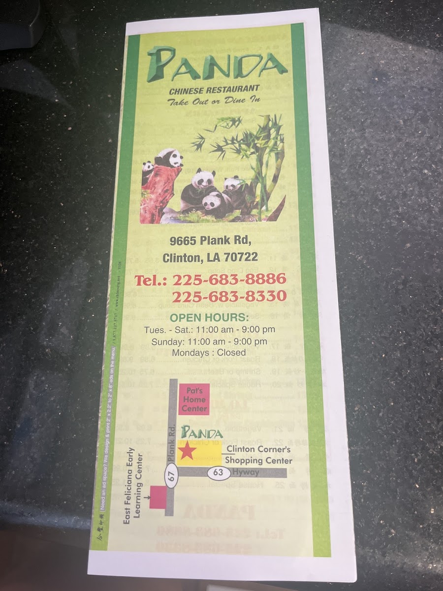 Stepping into Panda Chinese Restaurant feels like entering a quietly comfortable neighborhood spot where warmth and familiarity greet you as much as the aromas wafting from the kitchen. Nestled along Plank Road in Clinton, LA, the restaurant moves at its own relaxed rhythm—no rush, just the steady hum of conversations blending seamlessly with the clink of dishes being prepared and served. It’s the kind of place where you find yourself unwinding naturally, reassured by friendly faces behind the counter and a sense of genuine care in the small details.