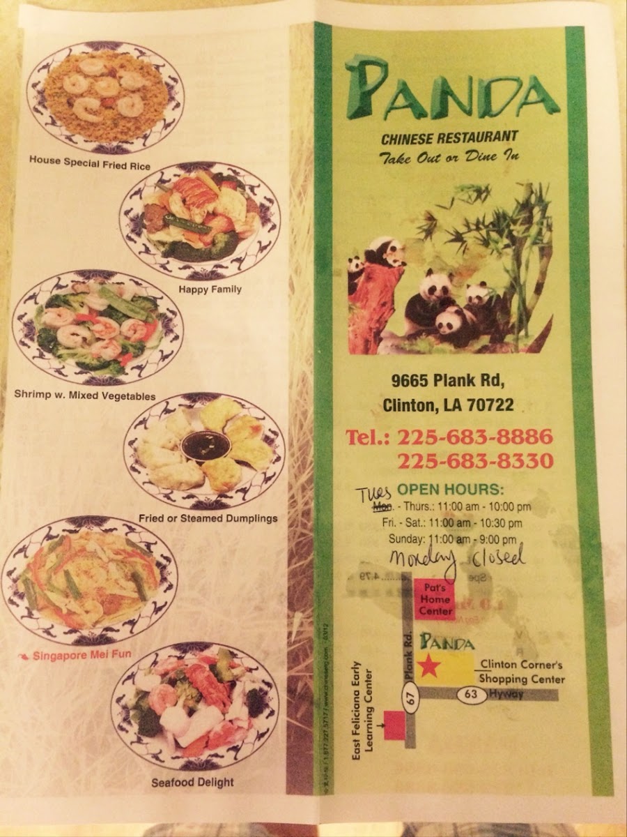 Panda Chinese Restaurant - Clinton Menu