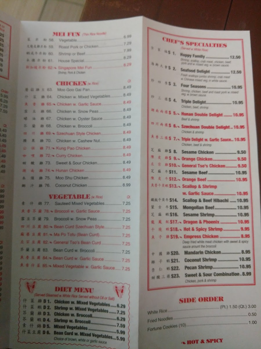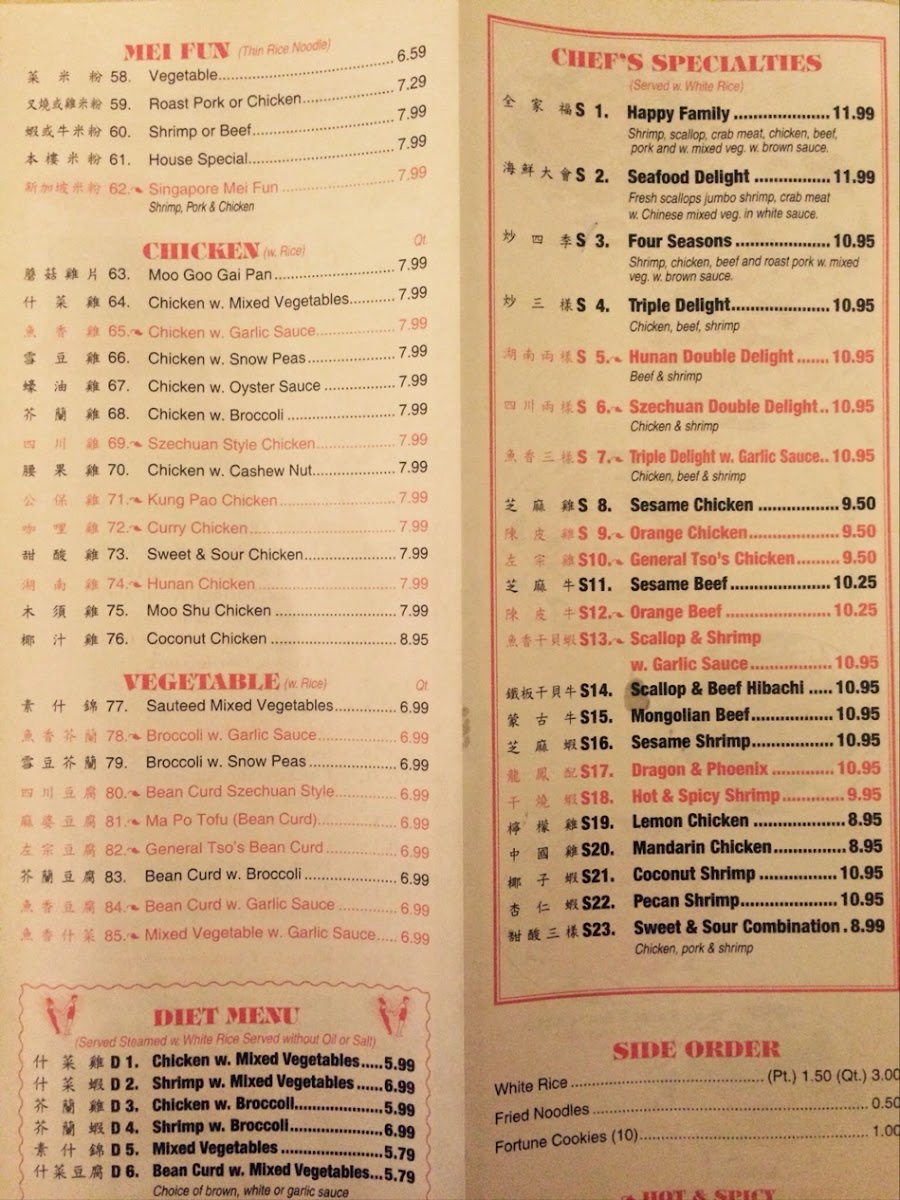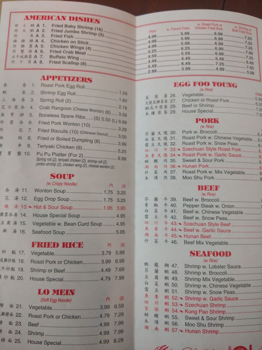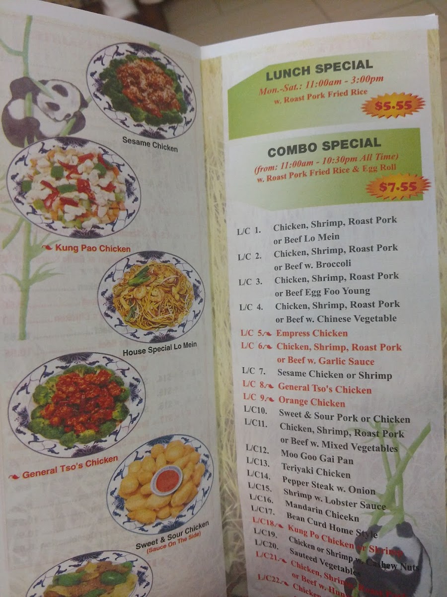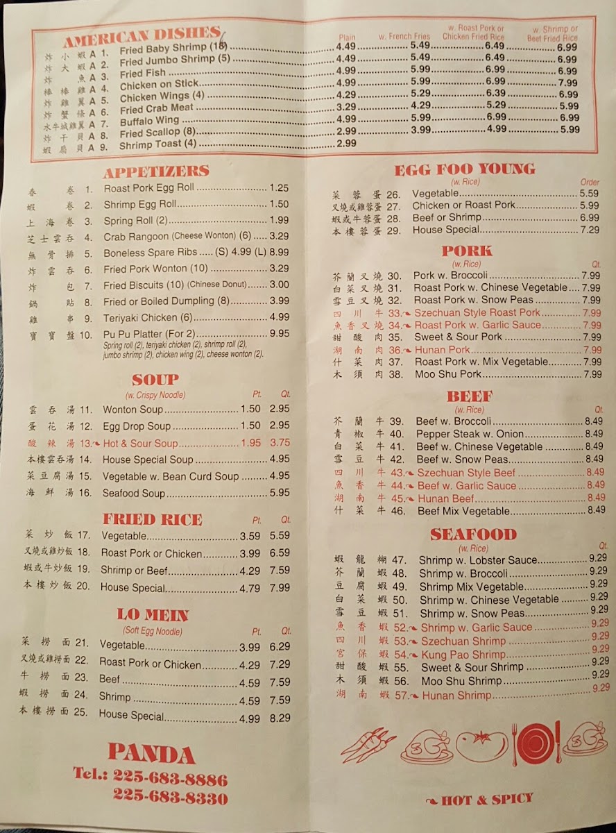 The menu at Panda Chinese Restaurant offers a straightforward selection of comforting Chinese classics that suit both casual dining and quick takeout. You’ll find familiar favorites like fried rice and a variety of soups to start, paired with hearty options such as roast pork or chicken and house specialties that bring bold, balanced flavors to the table.